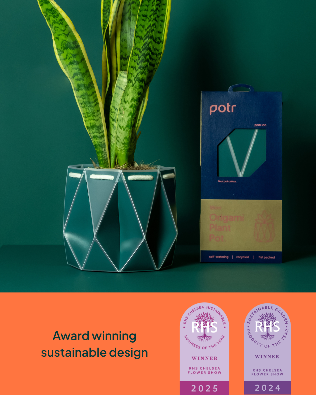 POTR Pots are delivered flat pack through your letterbox with the smallest carbon footprint possible, ensuring you never miss a delivery. The flat package is transformed into a robust planter via the art of origami.