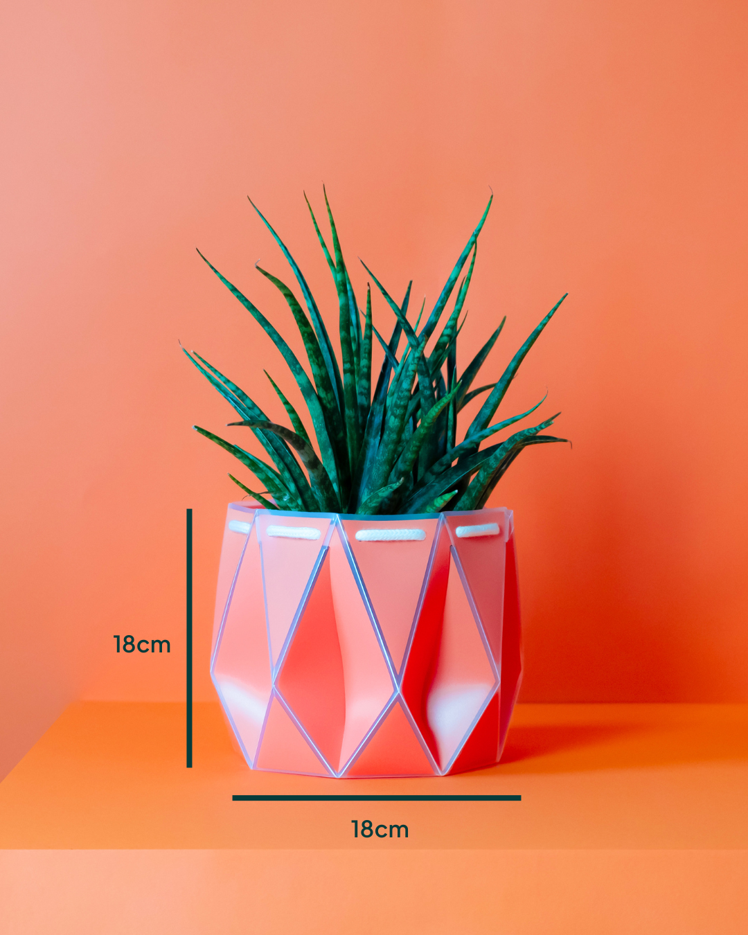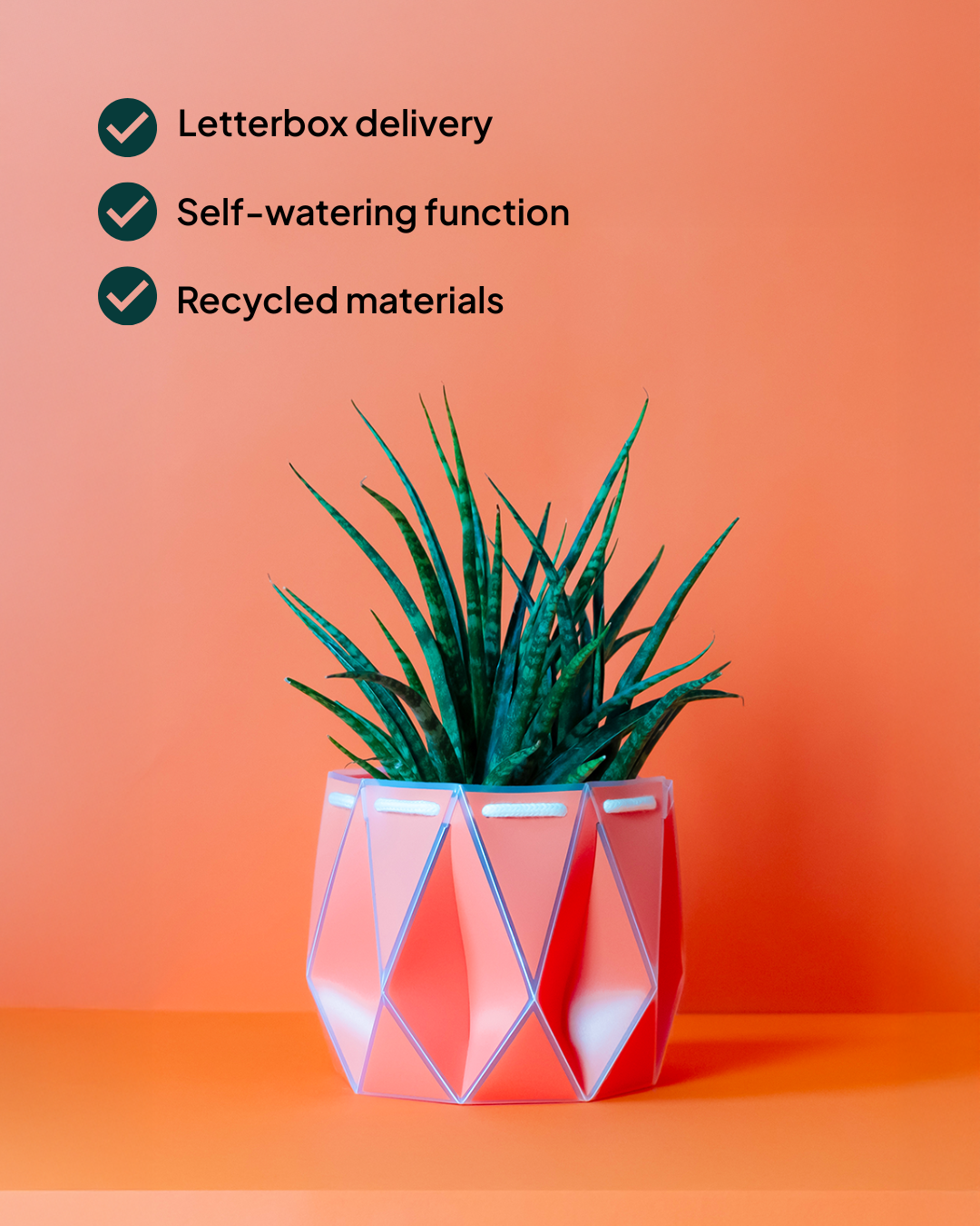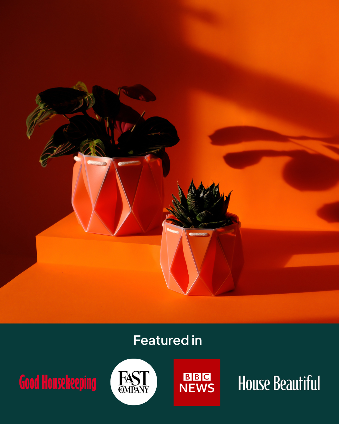 • Origami inspired design that uses 95% less material compared to traditional plant pots.